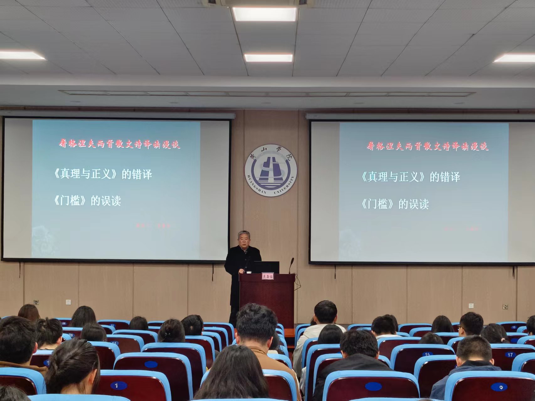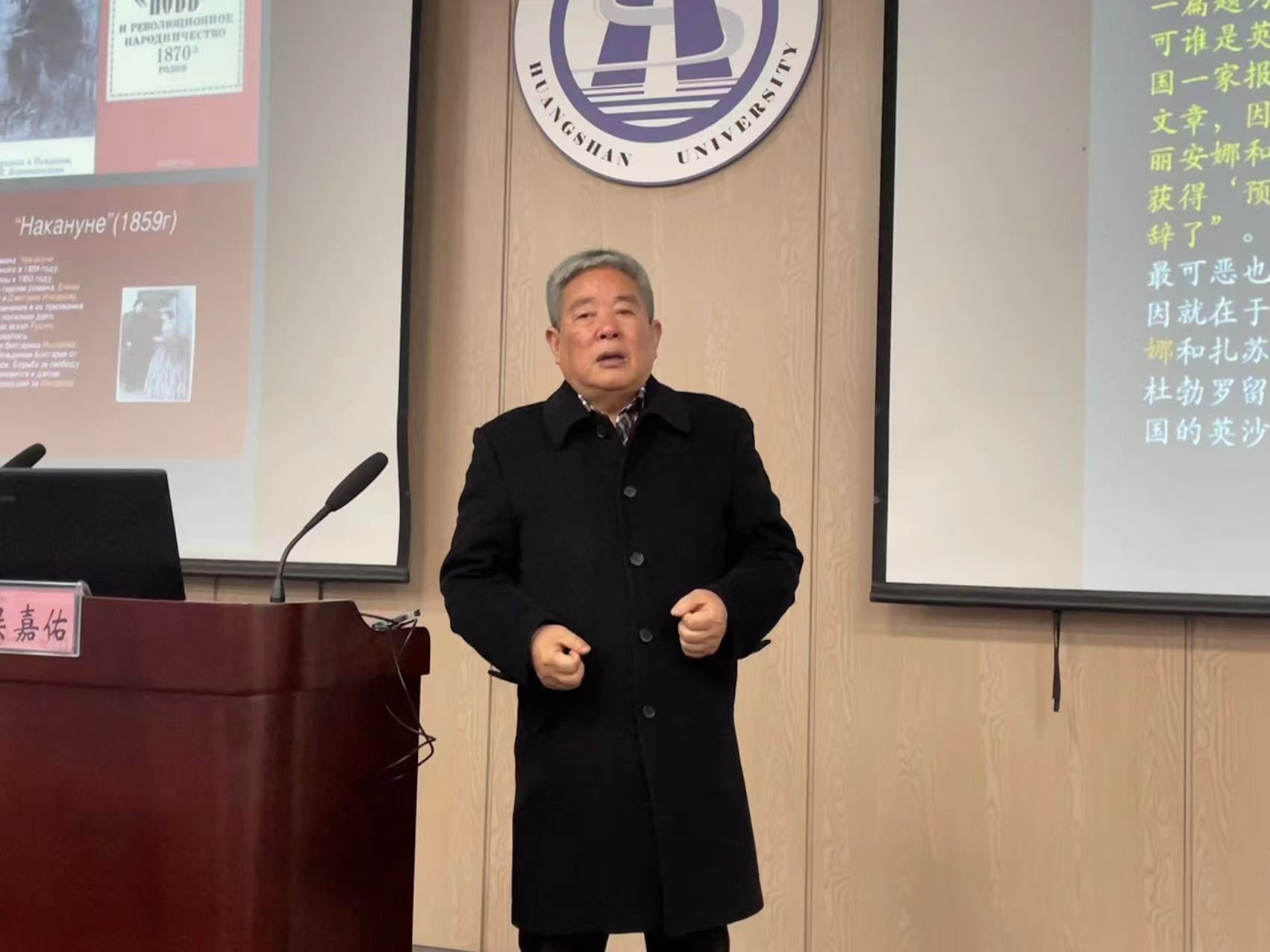 3月13日下午,jbo竞博官网举办的“屠格涅夫两首散文诗译读漫谈”学术报告会在文端楼一楼报告厅举行,吴嘉佑教授应邀作报告。该院近300名师生参加报告会。