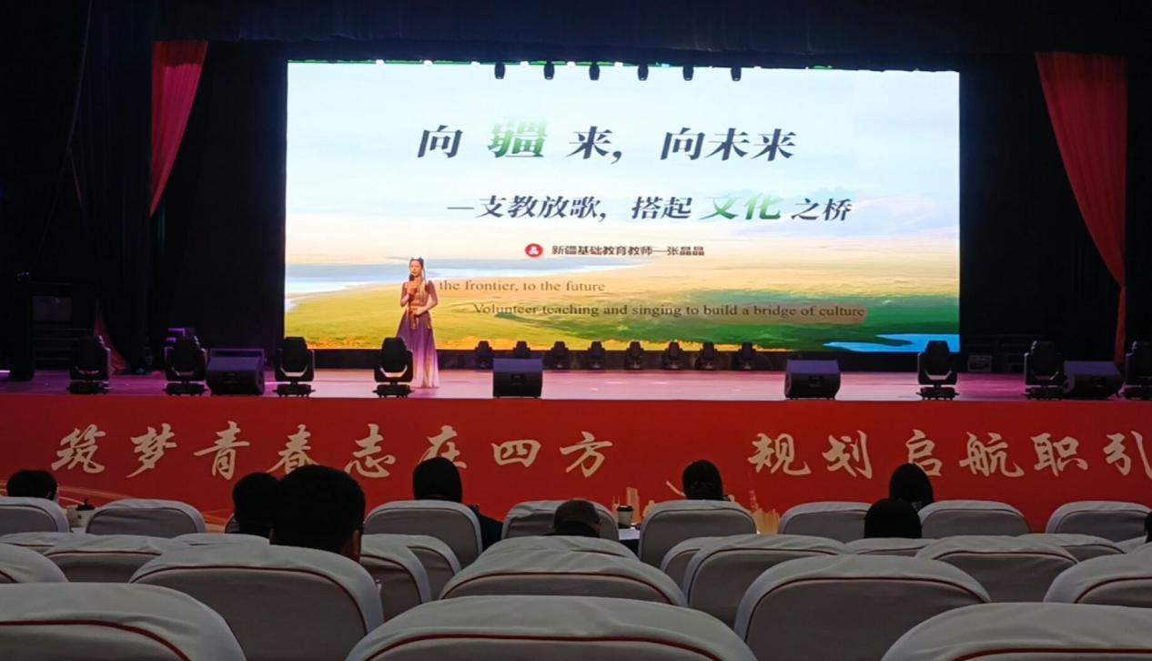 决赛现场设有主题陈述、评委提问、天降offer环节,张晶晶同学结合所学专业知识及自身实际,阐释了一名“新疆基础教育教师”的职业目标,充分展现了当代老员工奋发有为、致力服务西部教育发展事业的精神风貌,汇报内容和现场答辩赢得了评委们的充分肯定。最终荣获成长赛道(高教组)二等奖优异成绩,为学院及个人争得了荣誉。