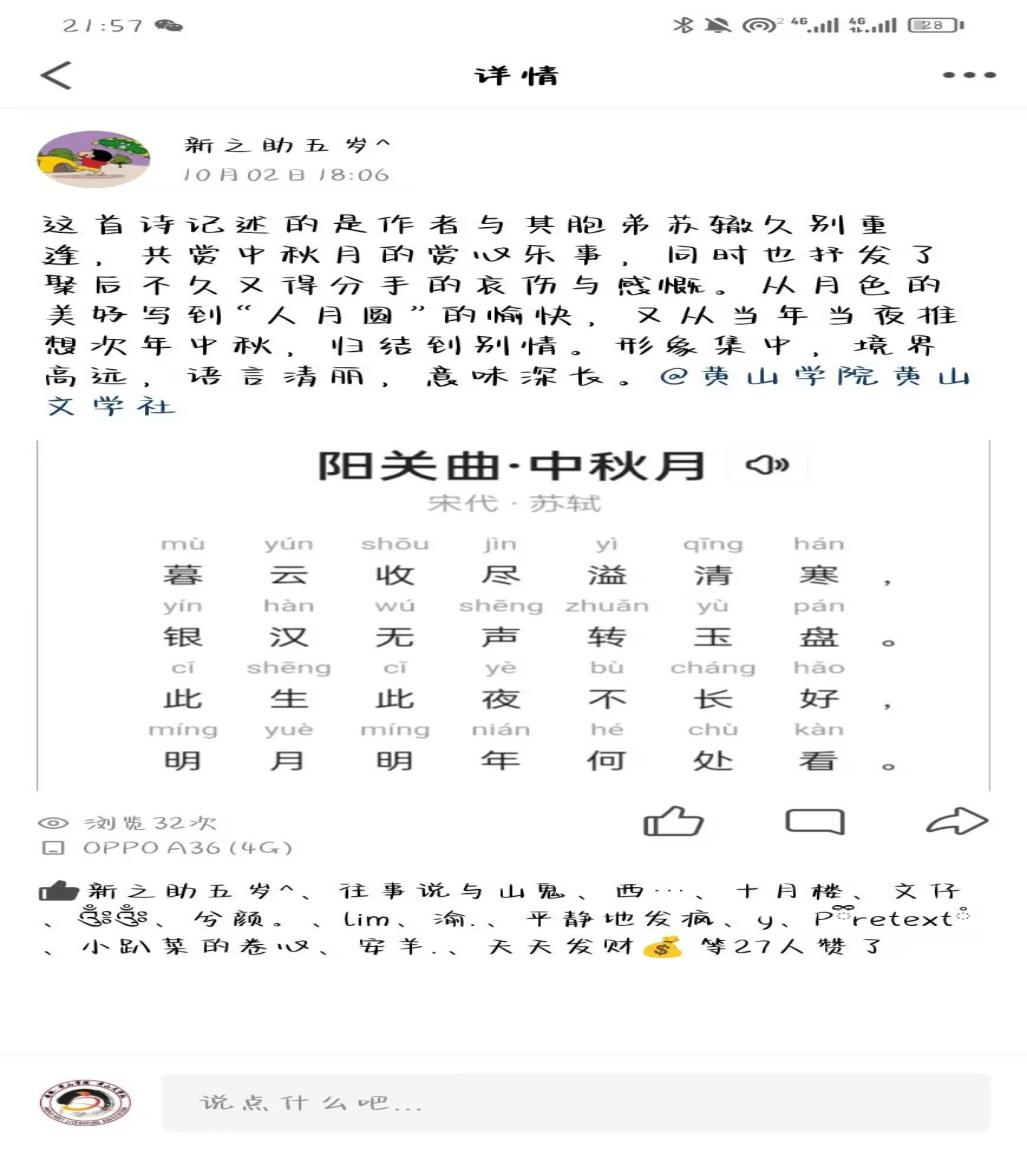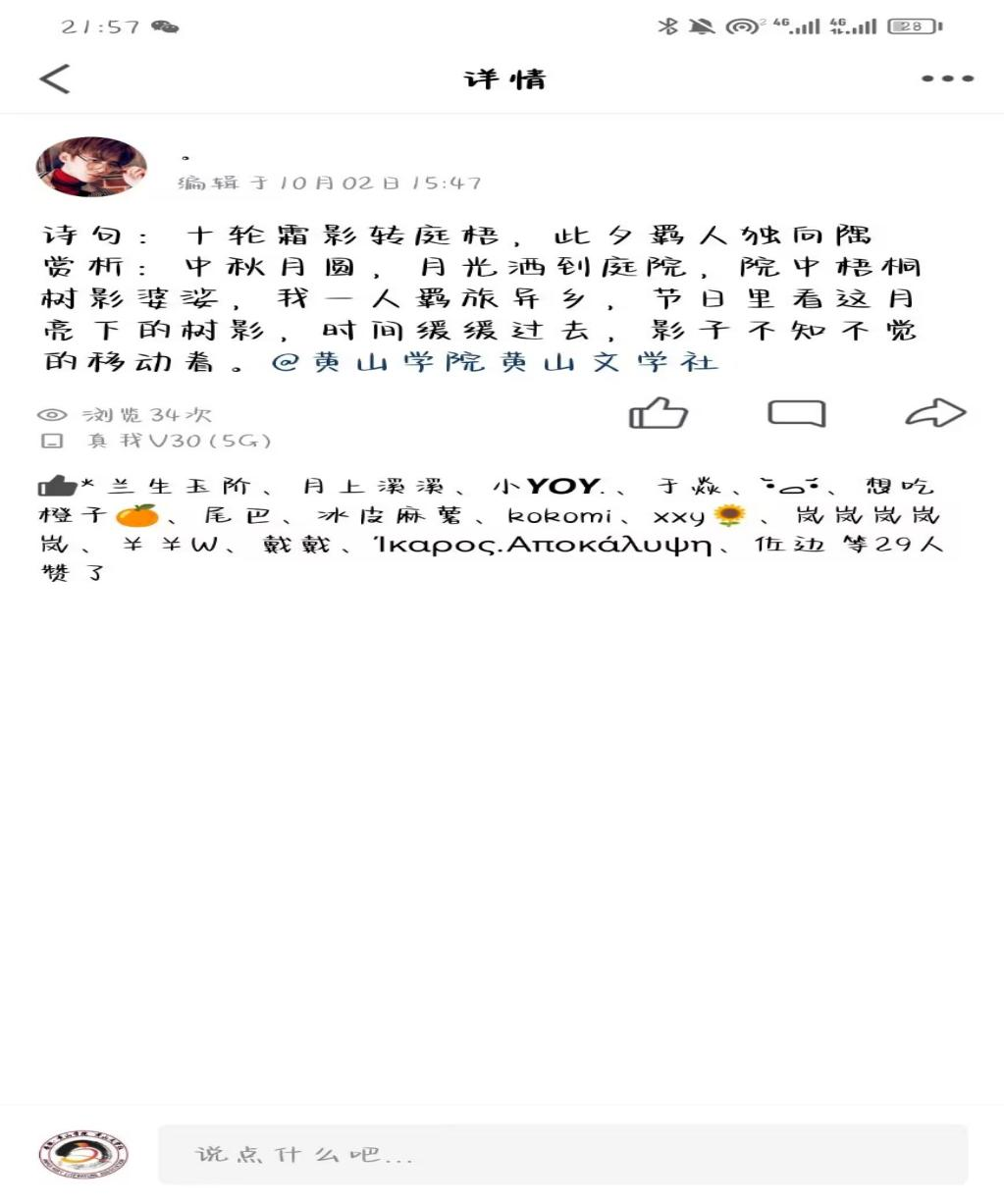 【社团风采】黄山文学社成功举办中秋诗词鉴赏活动